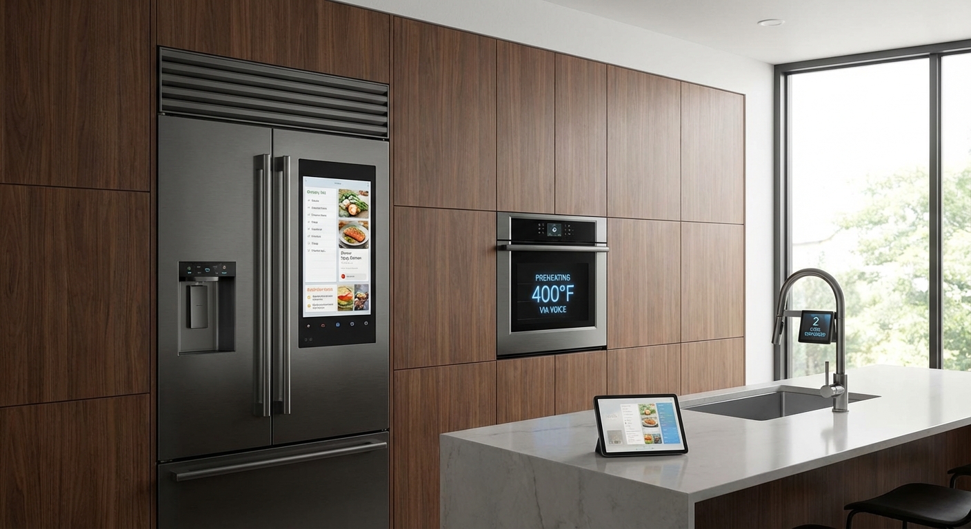 The 2026 kitchen is intelligent. We are seeing fridges that track expiration dates and suggest recipes based on what's inside, ovens that can be preheated via voice command, and faucets that dispense exact measurements of water ("pour 2 cups").
