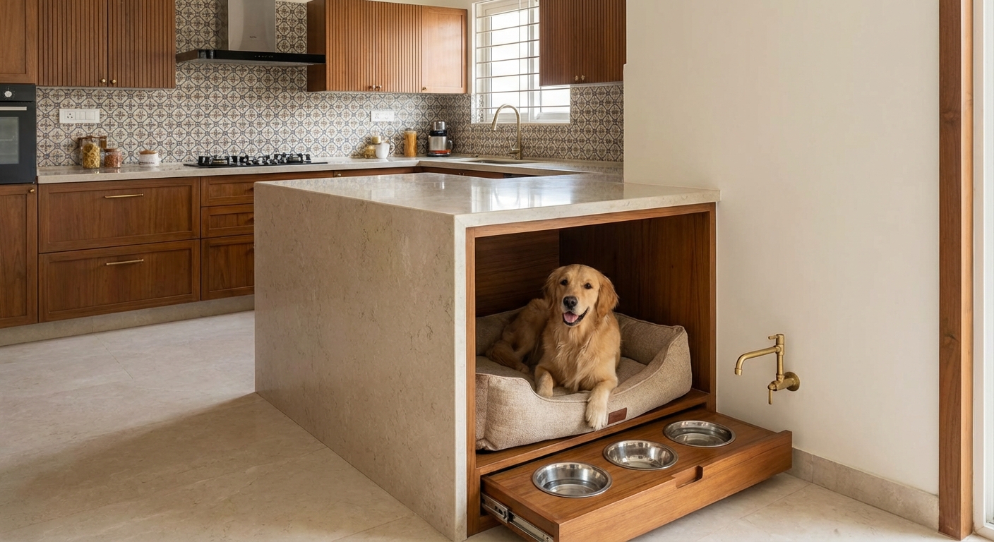 For many, pets are family. Kitchens in 2026 are being designed with furry friends in mind. This includes built-in feeding stations (drawers that pull out with bowls), hidden storage for kibble, and even "pot filler" faucets at floor level for filling water bowls.